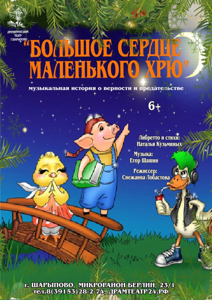 В центре внимания – трогательная история маленького поросенка Хрю, обладающего невероятно добрым и открытым сердцем. Он с радостью принимает мир вокруг и ценит каждое мгновение. Особое место в его жизни занимает первая настоящая дружба с цыпленком Милой, которому Хрю доверяет свои самые сокровенные мечты. Казалось бы, ничто не может омрачить их крепкую связь, но появление гуся Георгия вносит свои коррективы. Гога – полная противоположность Хрю: он прагматичен, расчетлив и добился заметных успехов, даже обзавелся блестящей новой машиной. Перед Ми-Ми встает непростой выбор: кому отдать предпочтение – искреннему мечтателю или успешному реалисту? Эта постановка, наполненная озорством и музыкой, обращается к вечным темам добра, истинной дружбы, смелости и важности следования за своими мечтами. Зрителей ждет увлекательное путешествие в мир, где ценятся искренность чувств и преданность.